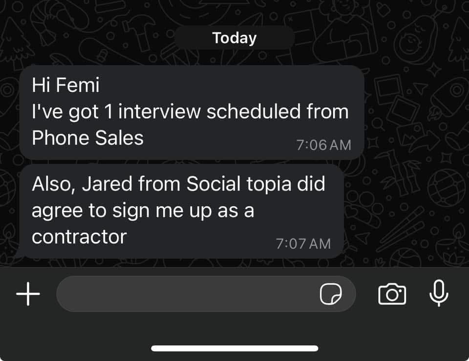 Come in with zero experiences in remote sales and got multiples offers, and then hitting $5k/months in the US market