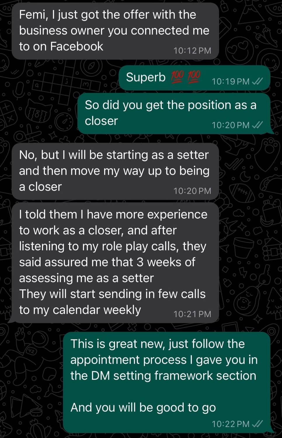 "Landed my first closer role in 2 weeks. The positioning blueprint is gold."