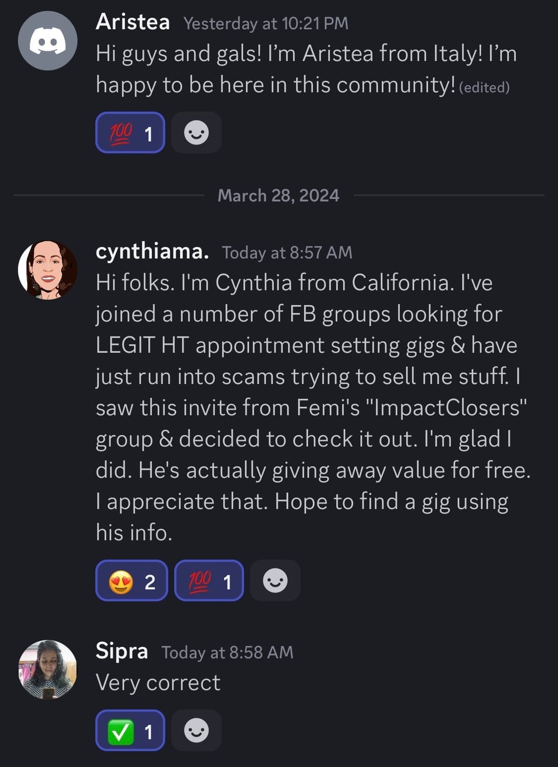 High-ticket appointment setting and closing roles from verified coaches, consultants, and course creators. There also other remote sales jobs (like, tech, insurances and solar sales)