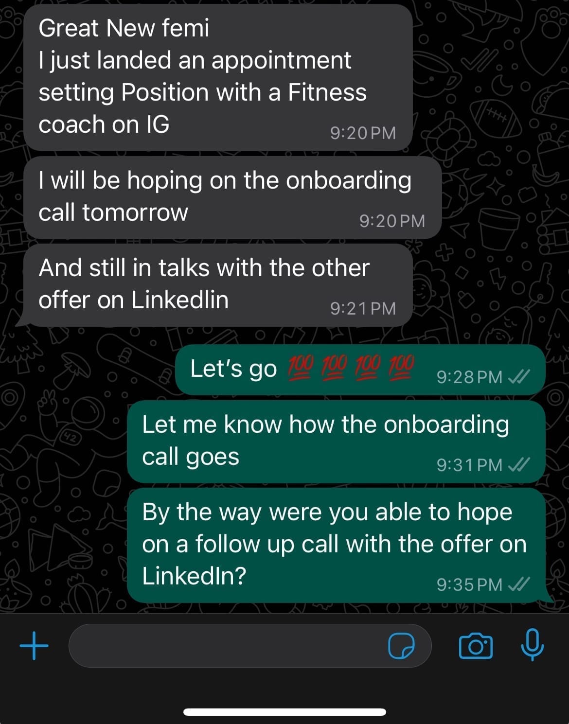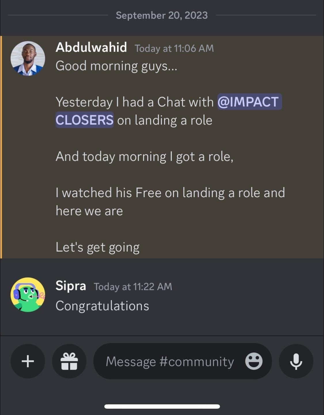 Join a growing network of setters, closers, and mentors who are already landing roles — ask questions, get referrals, and stay plugged into active opportunities.